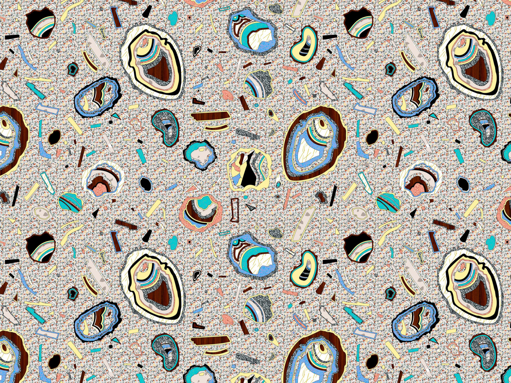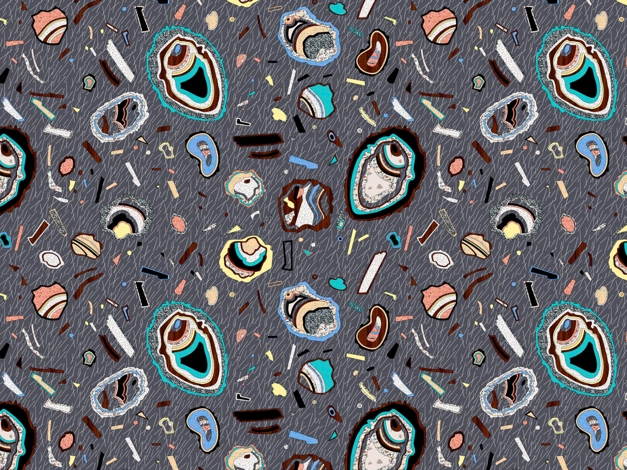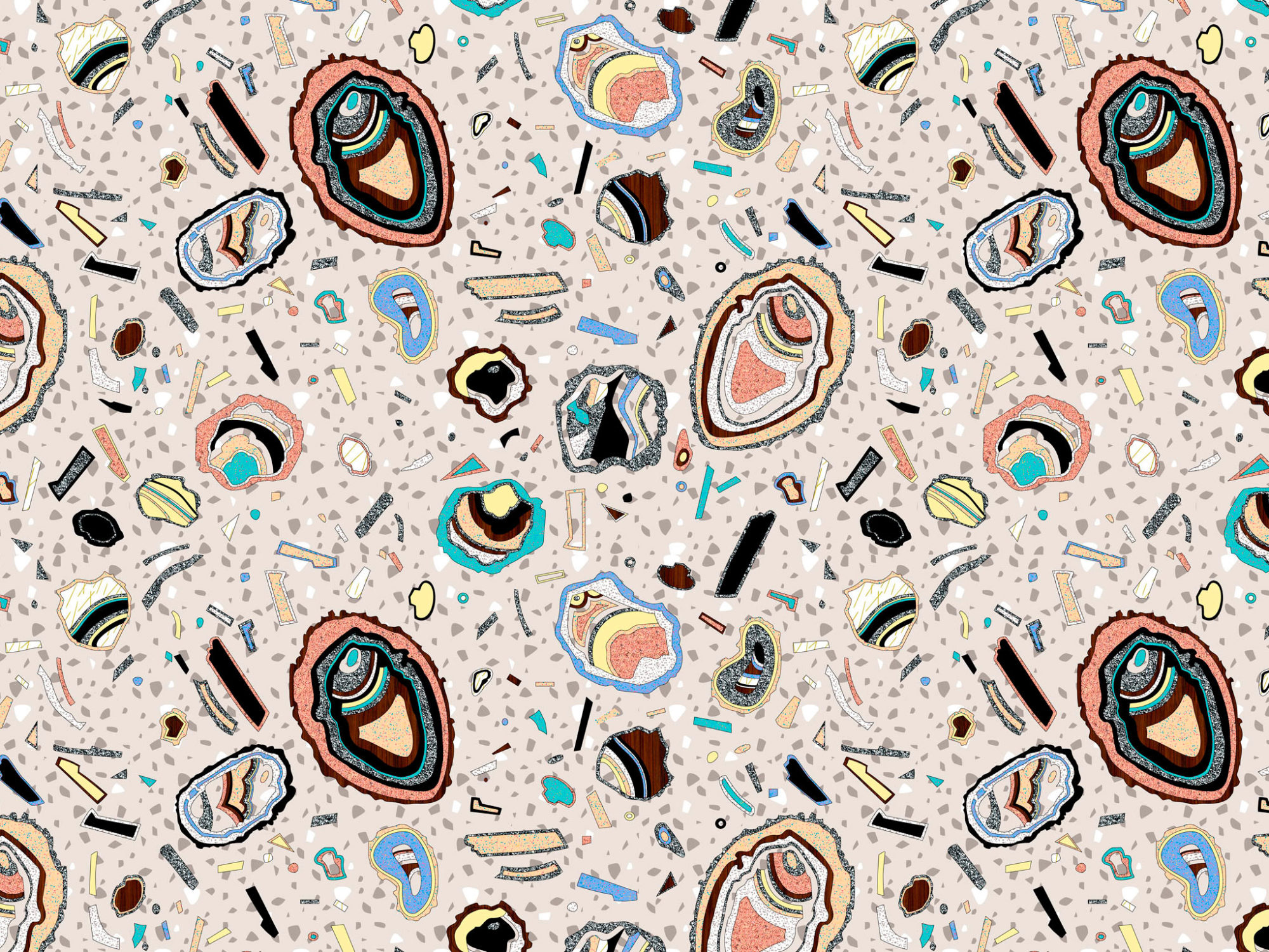 Soft Rock – repeat, was originally a file used to choose colour ways for the Hard Rock furniture. However I became fascinated with making a fake of a fake, re-interpretation interpretation the laminates, which often are interpretations themselves. The pattern is inspired by the patternations found in rocks and minerals. Also available as Rolled rock digitally printed wallpaper.